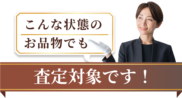 基本的にどんなものでも査定はさせていただきます。お客様が値が付かないと、お考えの物でも金額がつく場合も多いです。ぜひ実際の状態を拝見させていただき、金額提示をさせてください。